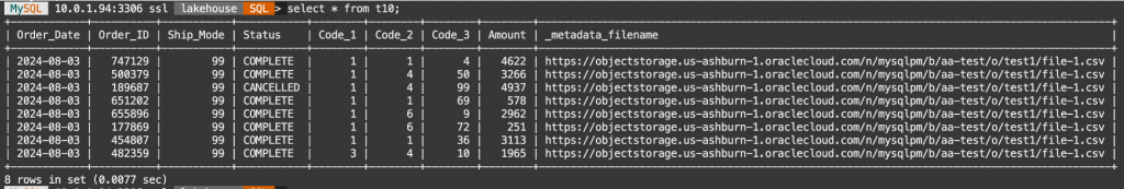 In the 9.6.1 release of MySQL HeatWave, Lakehouse now supports the _metadata_filename column name.