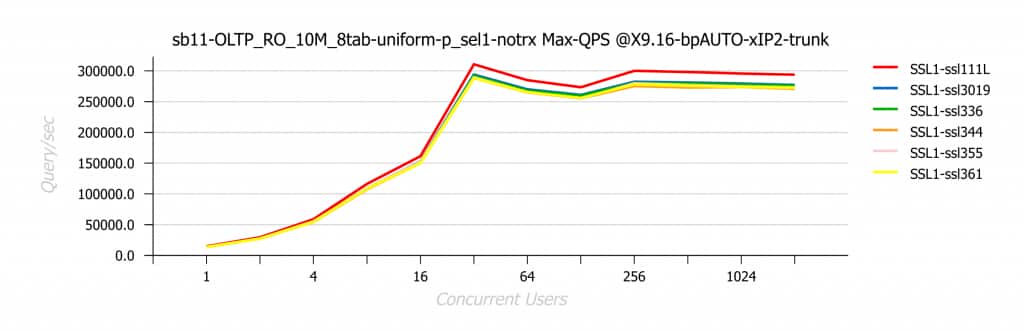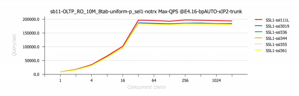 Dimitri Kravtchuk measured the MySQL performance difference when compiled against a number of different OpenSSL versions: