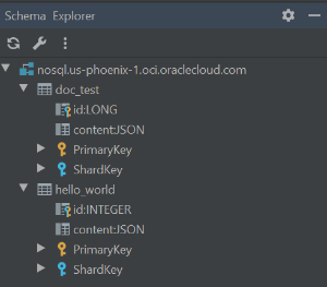 Refresh the Schema Explorer window and you can see the tables in your Oracle NoSQL Database Cloud Service right here in the IntelliJ IDE. Browse the tables and their data easily from this window.