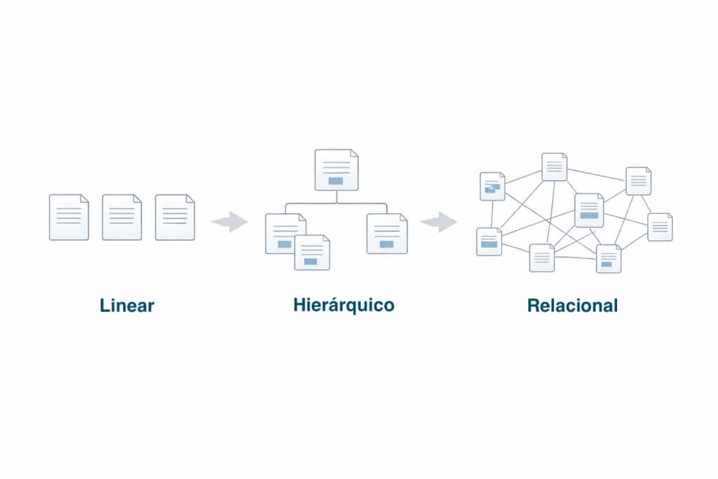 Nesse ponto, o problema deixa de ser apenas recuperar termos exatos ou semelhantes semanticamente. Agora, a estrutura do acervo do documental passa a exigir a capacidade de navegar, conectar e reconstruir o contexto a partir de múltiplas fontes interdependentes.