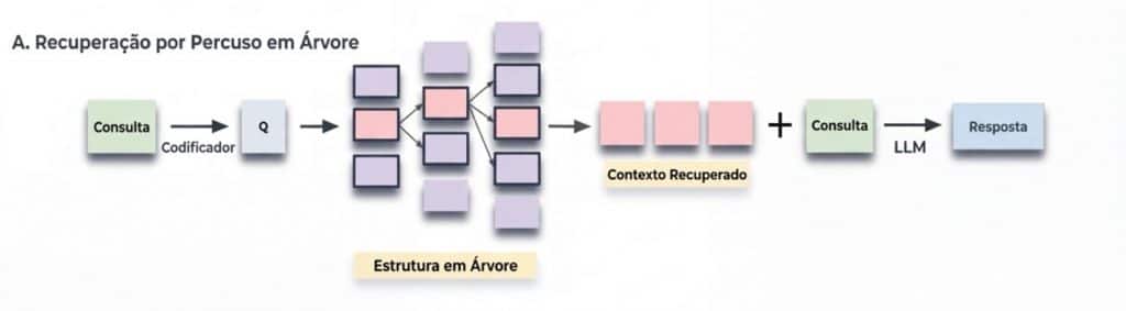 Uma evolução relevante nesse nível é o uso de técnicas como o RAPTOR (Recursive Abstractive Processing for Tree-Organized Retrieval), que organiza o conteúdo em uma estrutura hierárquica baseada em resumos. Os documentos são progressivamente sintetizados em diferentes níveis de abstração, formando uma árvore de conhecimento.