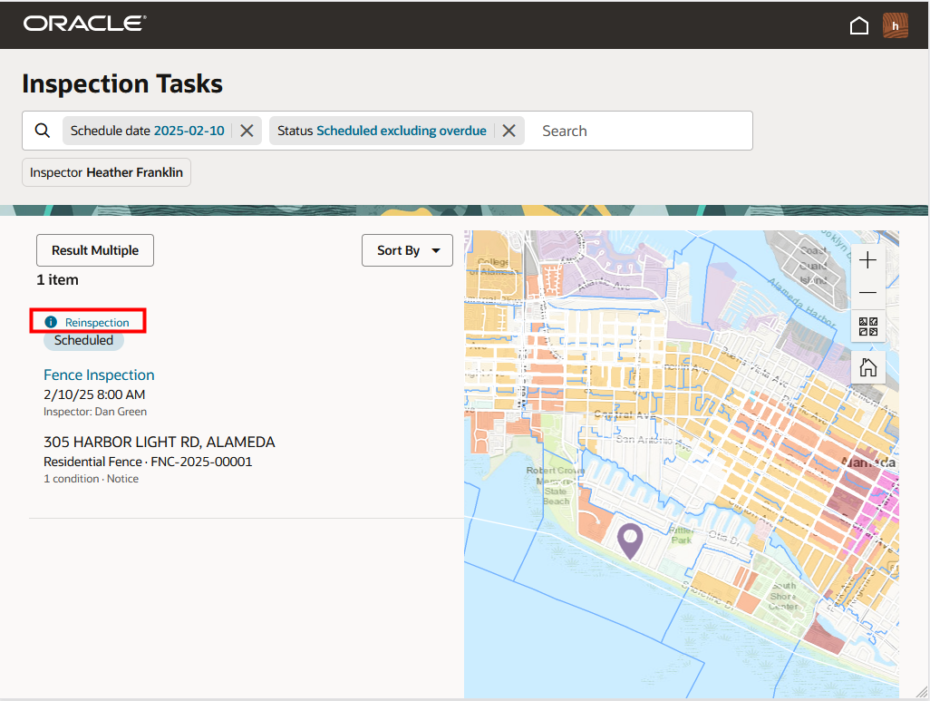 The inspection is labeled clearly as a Reinspection in the Inspection Tasks page so inspectors can quickly identify it as such.