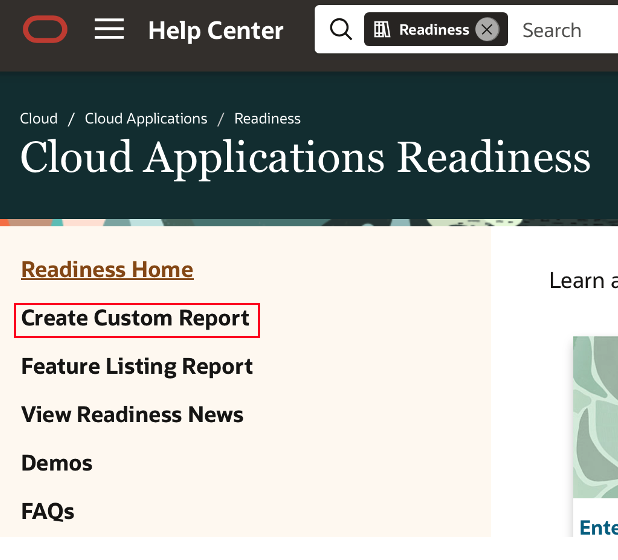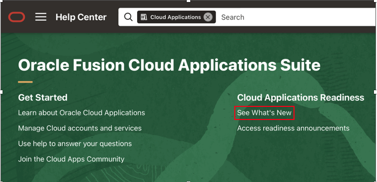 From the Oracle Help Center, you can click on the Cloud Applications Readiness > See What’s New link to access the “What’s New” content.