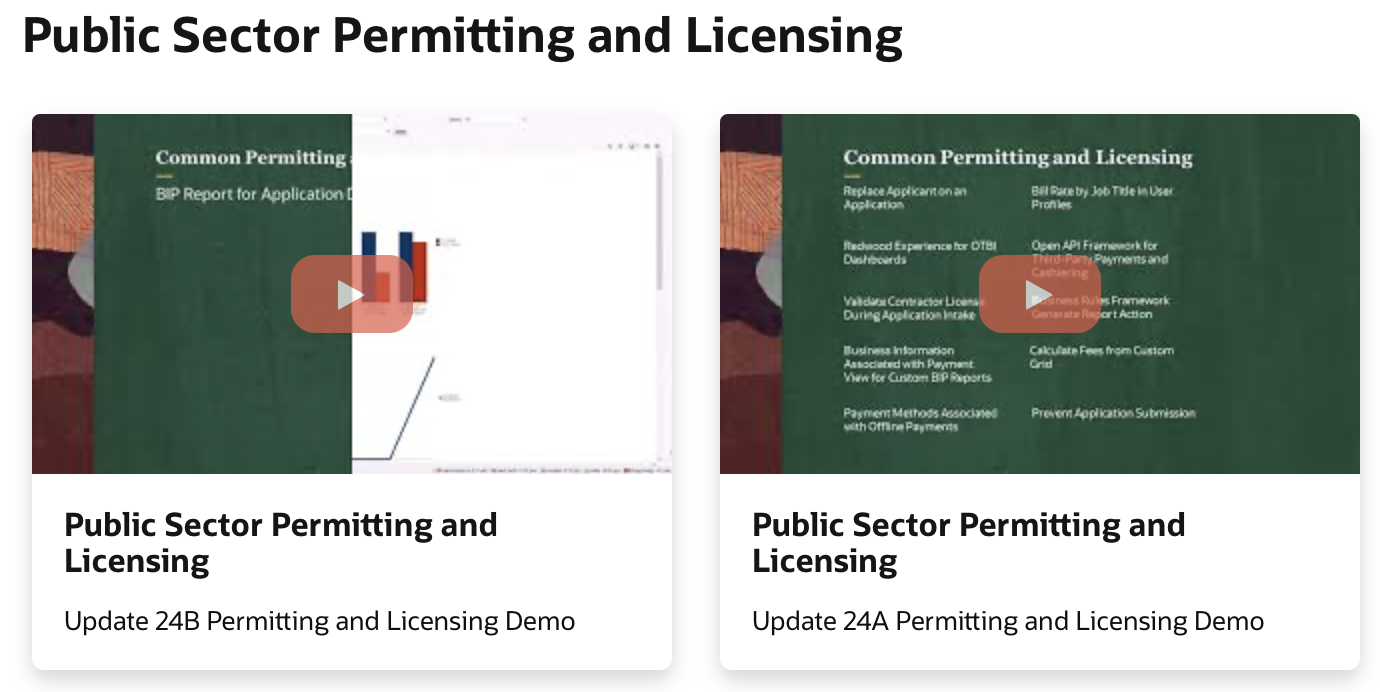 There you will find the Public Sector Permitting and Licensing Spotlight videos for the most recent releases.