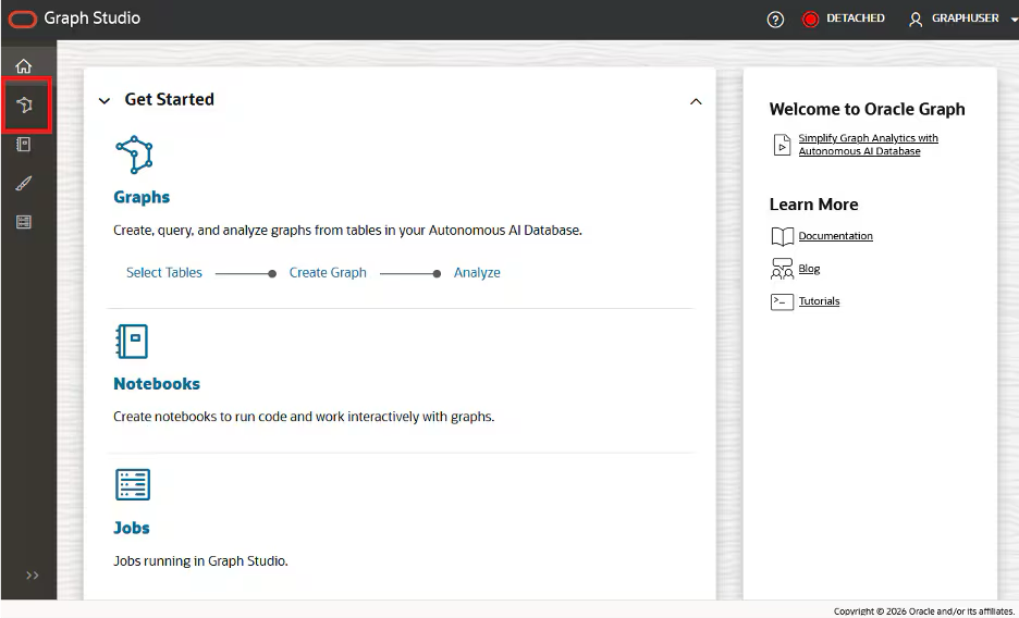 生成AIの支援により、Graph Studioで新しいグラフモデルを作成するのは簡単です。Graph Studioにログインすると、左側にある「Graphs」アイコンをクリックすることで、グラフ・モデラー機能を起動できます (図1)。