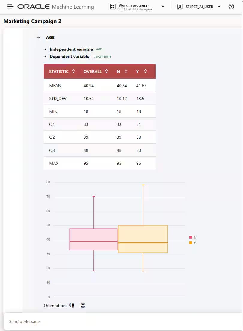 内部的には、オーケストレーションはSelect AI Agentフレームワークと統合されており、Oracle Open Agent Specificationを通じてプラグ可能な設計になっています。プロファイリングやトレーニングなど特定のタスクを実行するモジュール型ツール、ドメイン知識を組み込んだ厳選プロンプト・ライブラリ、信頼性の高いUI表示に向けて出力を構造化するレスポンス・スキーマ、そしてSelect AIによって実現されるSQL生成などが連携して動作します。大規模な機械学習モデルのトレーニングといった負荷の高い処理は非同期で実行できるため、その完了を待つ間も他の作業を継続することが可能です。