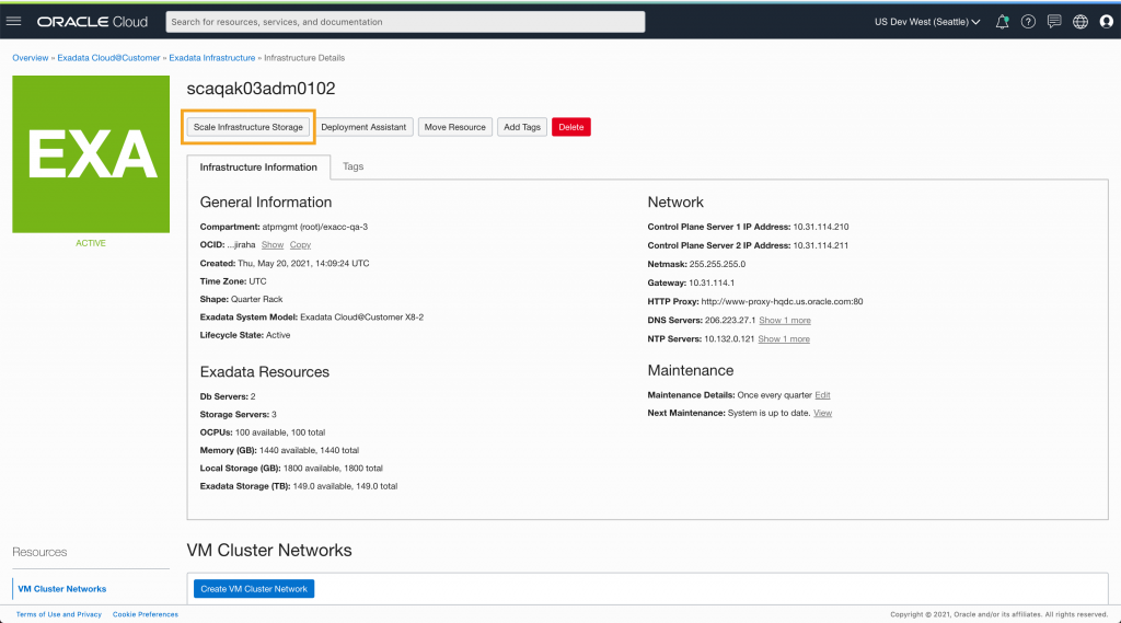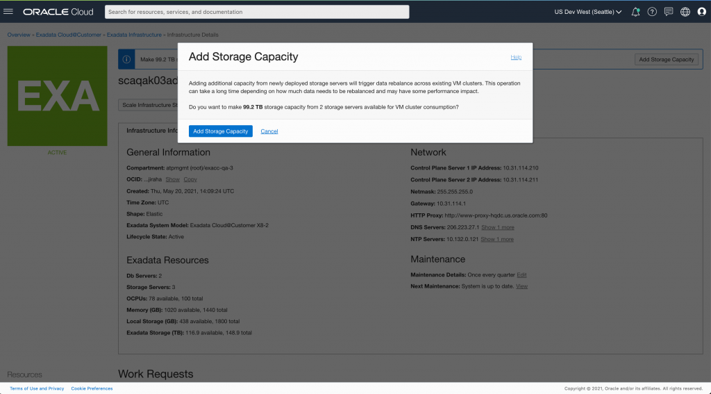 1.Exadataインフラストラクチャを拡張してストレージ容量を追加