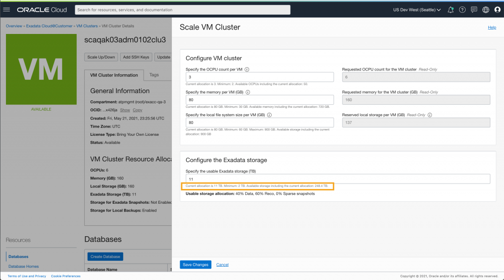 エラスティックストレージ拡張のサポートは、すべてのOCI商用リージョンのExadata Cloud @Customerで利用できるようになりました。