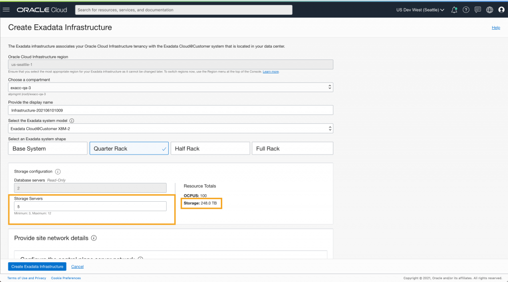 3.追加のストレージサーバーを使用したExadataインフラストラクチャを作成