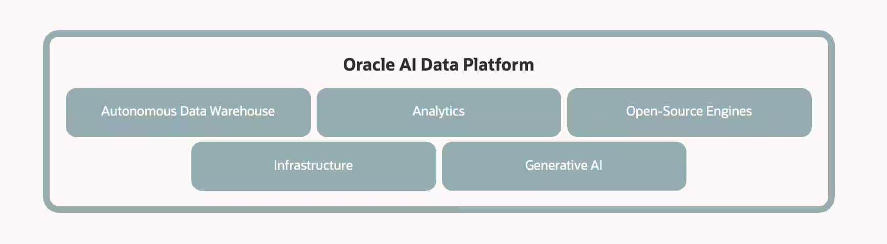 Oracle AI Data Platformは、データ、アナリティクス、そしてAIを、ガバナンスの効いた単一の環境へと統合するプラットフォームです。データの取り込みや準備から、モデルの開発・デプロイに至るまで、「データからAIへ」というライフサイクル全体を、安全かつ拡張性の高い基盤の上で統合します。Autonomous AI Database、Oracle Analytics Cloud、Apache Spark、そしてOCI Generative AIといった統合サービス群により、AI Data Platformは、チームが効率的にデータを準備・管理し、AIを適用できるよう支援します。データ・エンジニアリング、モデル開発、あるいはインテリジェントなアプリケーションの構築など、どのような用途においても、AI Data Platformは企業全体でAIを実用化するために必要なスピード、ガバナンス、そして統合性を提供します。本ブログでは、AI Data Platformに含まれる機能と、プラットフォームを構成する各コンポーネントの役割について解説します。