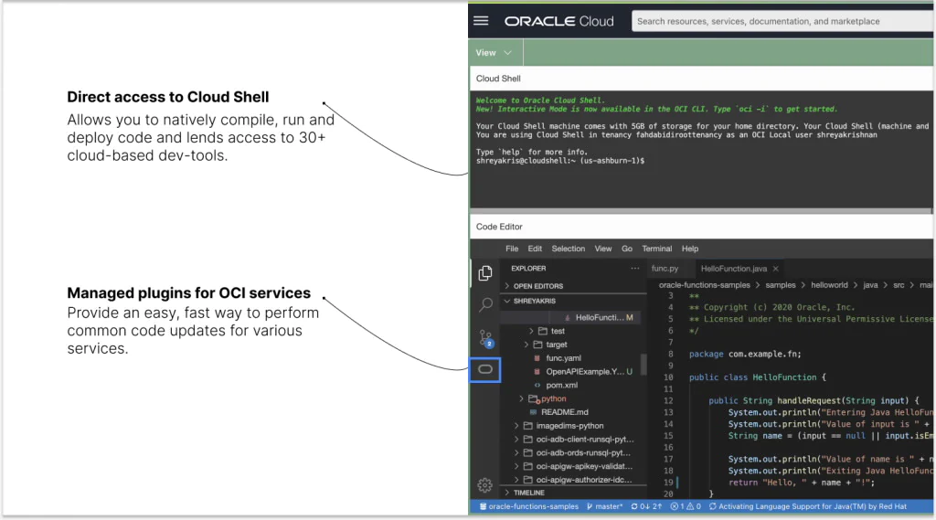 生産性を強化し、OCI でシームレスに統合された開発体験を提供するために設計されたCode Editorの主要な機能を見てみましょう。