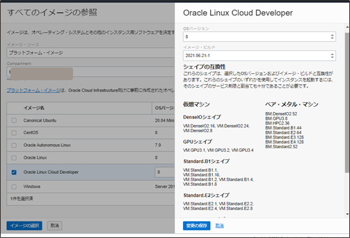 • イメージの詳細についてはマニュアルをご参照下さい:About the Oracle Linux Cloud Developer Image