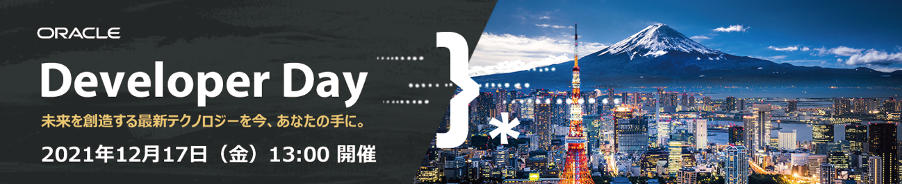 12月17日(金)には Oracle Developer Day 2021 が開催されます。Developer Day では、開発者、技術者向けのセッションやハンズオンが予定されておりますので、ぜひご参加をご検討ください!