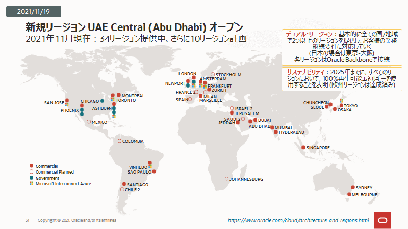 UAE Central (Abu Dhabi) リージョンがオープンしました。リージョン名 me-abudhabi-1、リージョン・キー AUH です。現時点で34リージョン提供中、今後さらに10リージョンを計画しています。