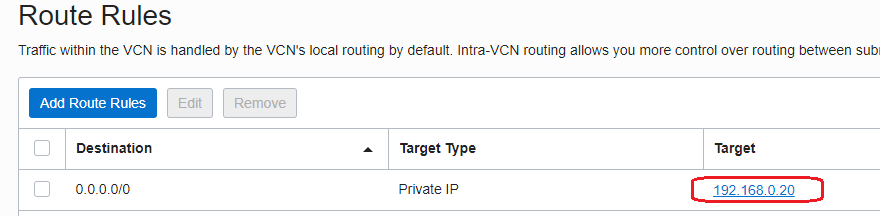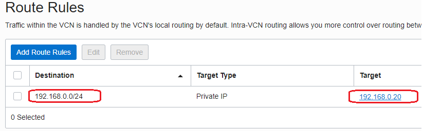 前述のブログからわかるように、VM1に関連付けられたルート表には、次のルーティング・ルールが含まれます: