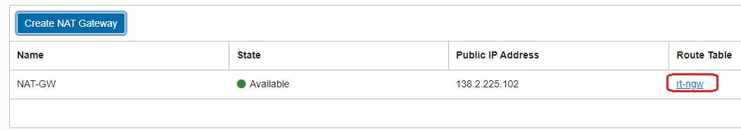 NAT Gatewayにアタッチされたルート表には、NFWのプライベートIPアドレスを介したVM1サブネットのルート・エントリが含まれます: