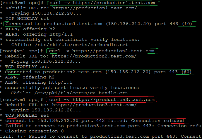 前述のcurlコマンドからわかるように、接続はproduction1および2に対して確立されていますが、production3に対しては確立されていません。