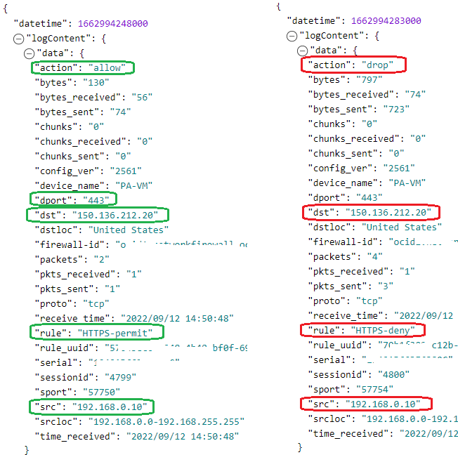 a) TCPポート443でproduction1.test.comおよびproduction2.test.comに対して192.168.0.10から150.136.212.20へのトラフィックを許可し、トラフィックをログに記録します。: