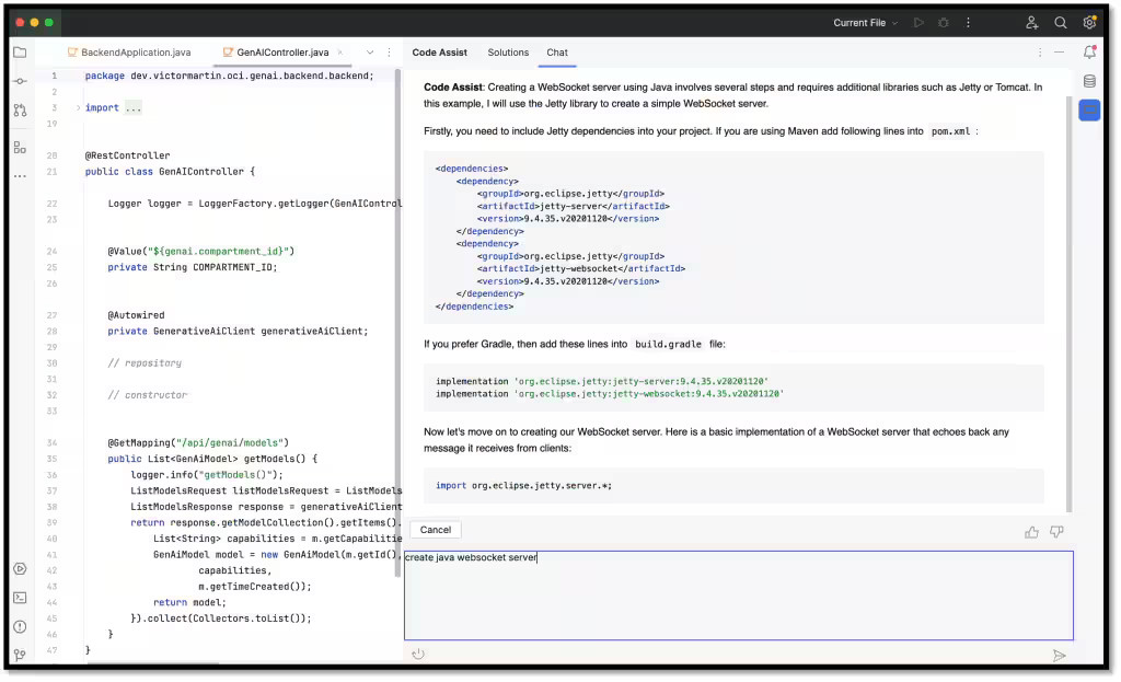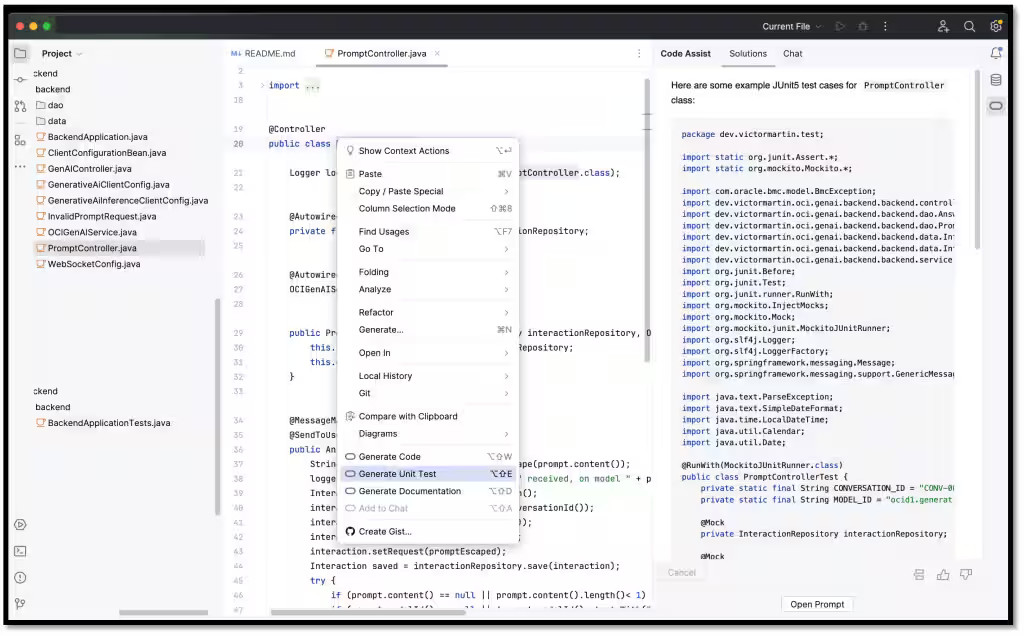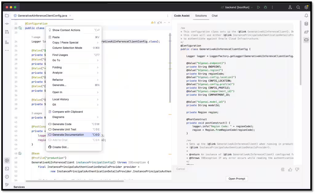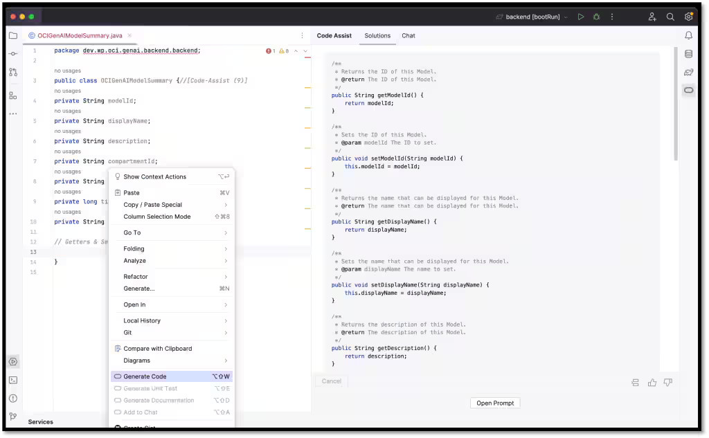 Oracle Code Assistは、JetBrains IntelliJ IDEA、Microsoft Visual Studio Codeなどの一般的な開発環境のプラグインとして利用可能になります。 Oracle内の開発者は現在、Oracle Code Assistを積極的に使用して新しい製品やサービスを構築しています。 将来的には外部開発者も利用できるようになる予定です。