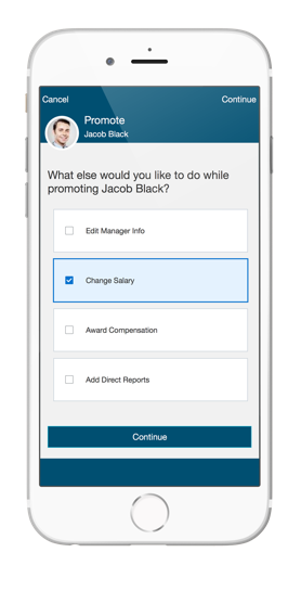 Employees and managers alike appreciate being able to use their preferred devices to complete their HR tasks and other business assignments. And because many employees work remotely, travel often, or don’t have an office-based job, solutions that enable them to access their required information and workflows from any location have become more desirable. Processes and interactions need to be designed to optimize these mobile experiences. This requires high-performing pages that load content and data fast and include only the information and tasks a user needs to engage with. As a rule, users should be empowered to resume any task on their mobile device exactly where they left off on their desktop, and vice versa, across the entire application suite.