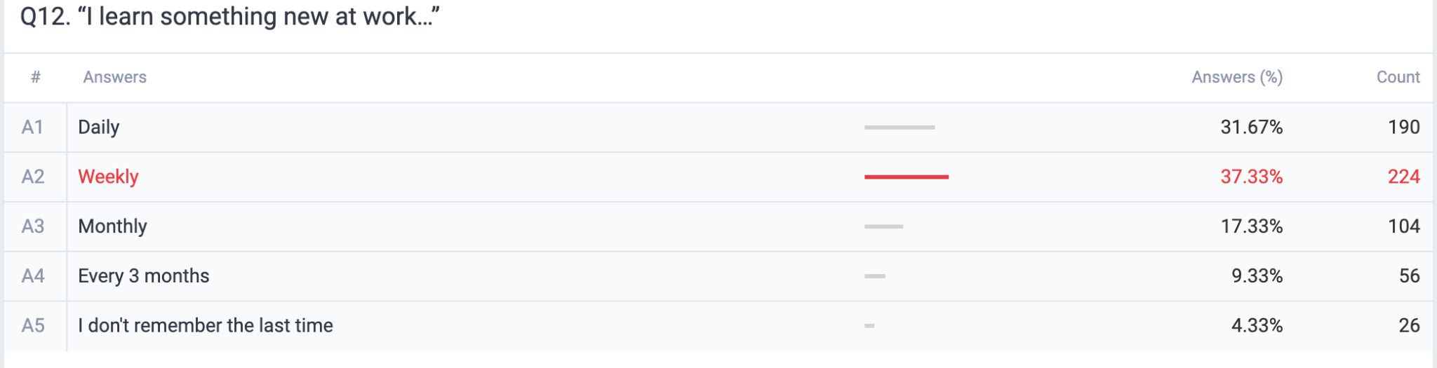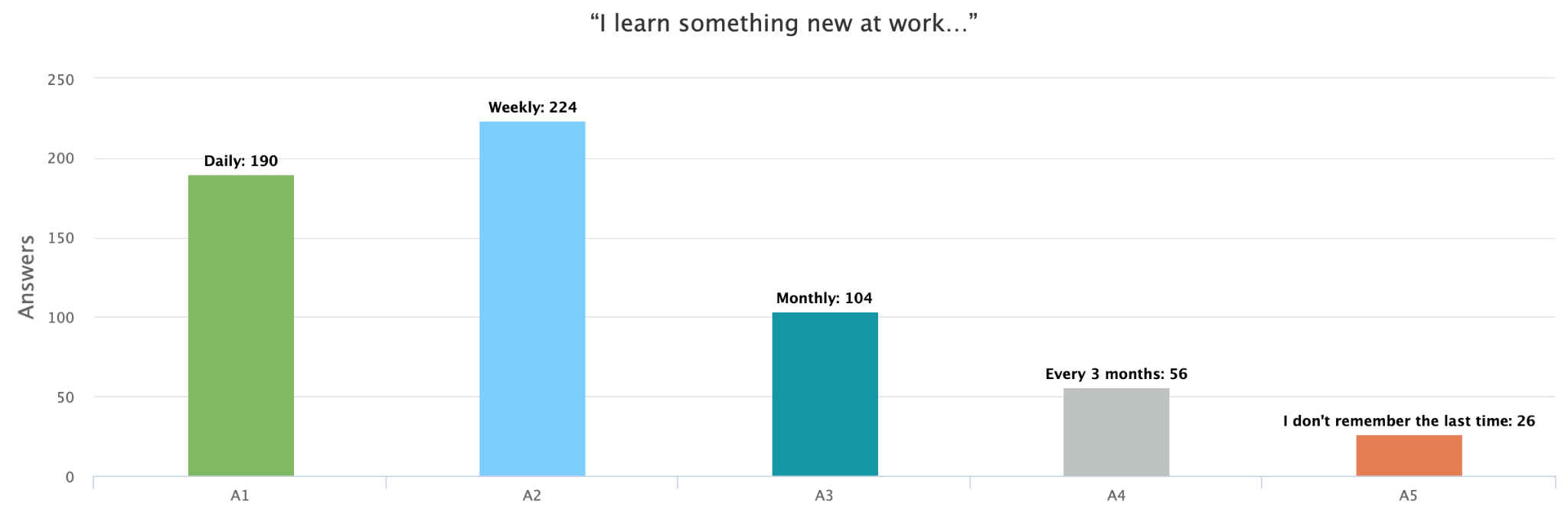 Most respondents say they learn something new at work weekly (37%)—32% even said daily.