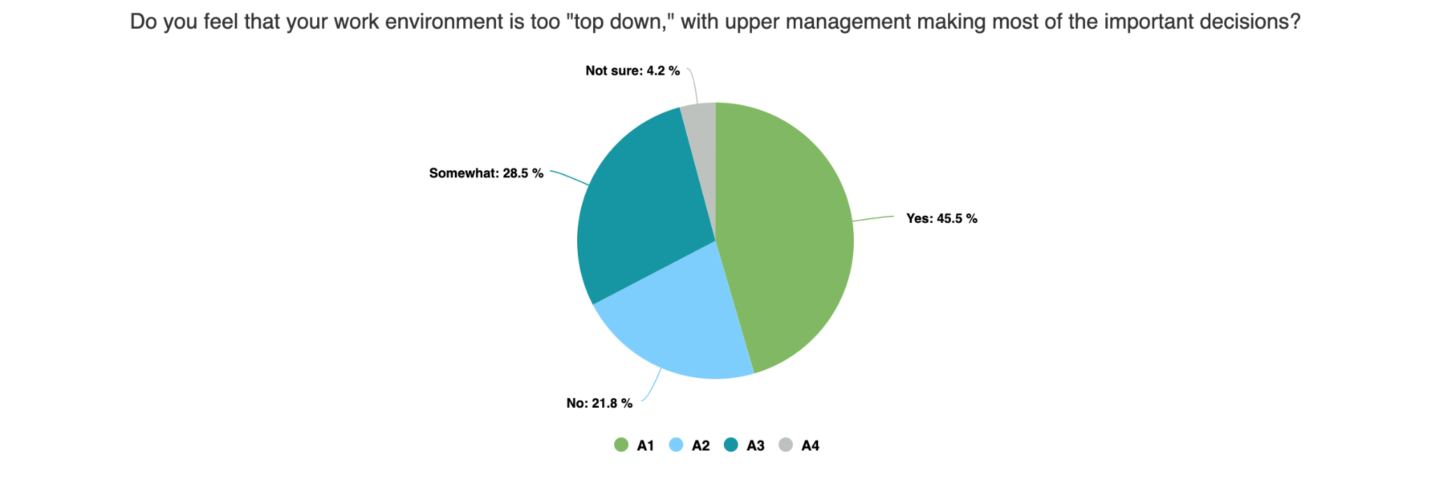 Generally, most respondents feel their work environment is too “top-down,” with upper management making most of the important decisions: