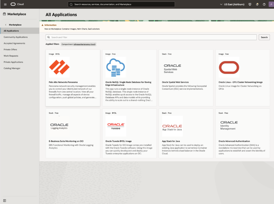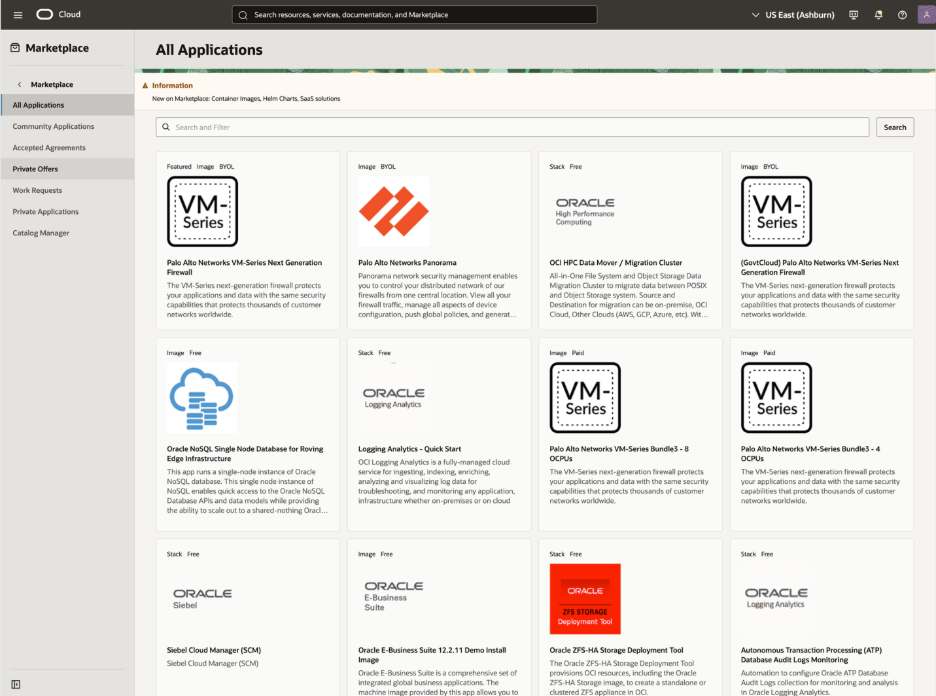 - Add OCI Marketplace listings and private applications: