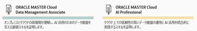 ORACLE MASTER Cloud 認定資格は、AI 活用のためのデータ管理スキルを横断的に捉え、技術者のスキルセットを明確に示す新しい認定資格です。