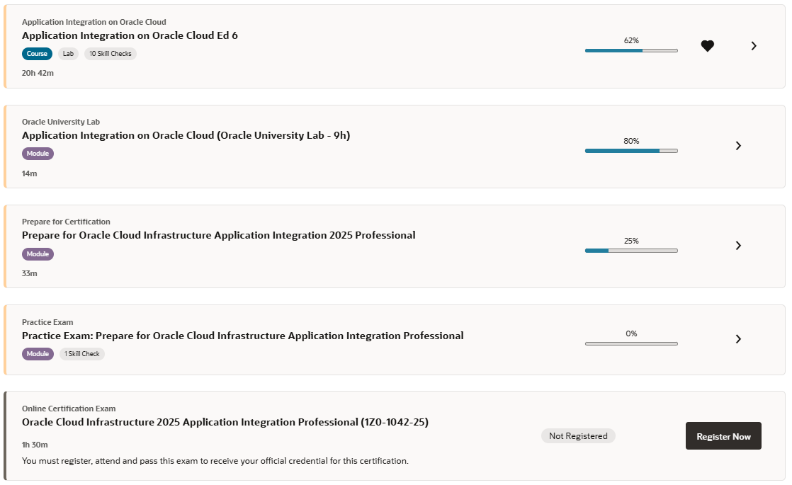Since this learning path provides fundamental training for implementing integrations with Oracle Integration, obviously anyone interested in OIC is welcome. However, if you’re a software developer, integration specialist, cloud architect, or a system integrator – you certainly are in the target audience for this course. Ideally, any IT professional that has a basic understanding of integration fundamentals – and are responsible for integrating Cloud-to-Cloud applications or Cloud-to-On-Premises use cases – will benefit from this training. OCI Application Integration Professional certification provides you with a competitive edge in the industry and is one of the most sought-after certifications in OCI, with hundreds of thousands of learners already enrolled.