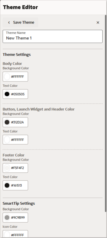 Saving Your Theme, to save your theme changes, enter a name in the Theme Name field, then select Save Theme.