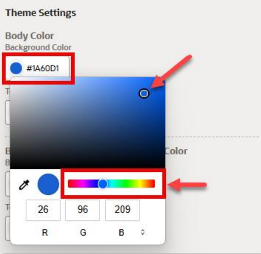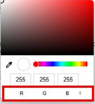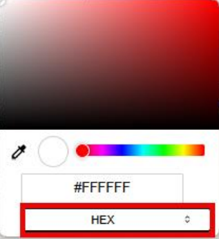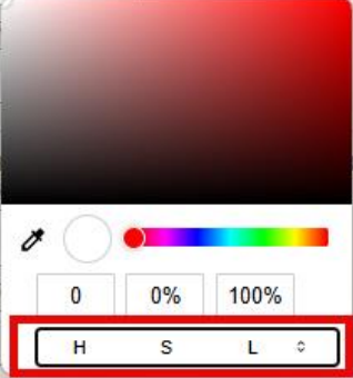Note: Colors can also be input as a Hex code, RGB, or HSL value directly into the color text field(s).