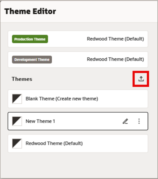 Selecting the Import Theme () button allows you to select and upload an existing theme (HTML file) from your file system.