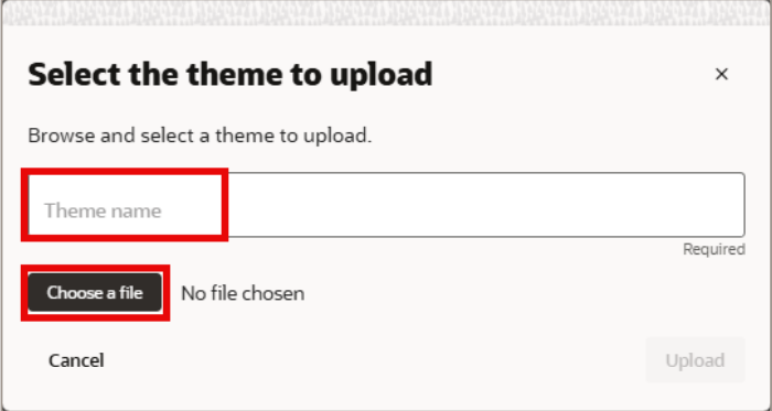 Enter a name for your theme and then select Choose a file to browse for an existing theme file.