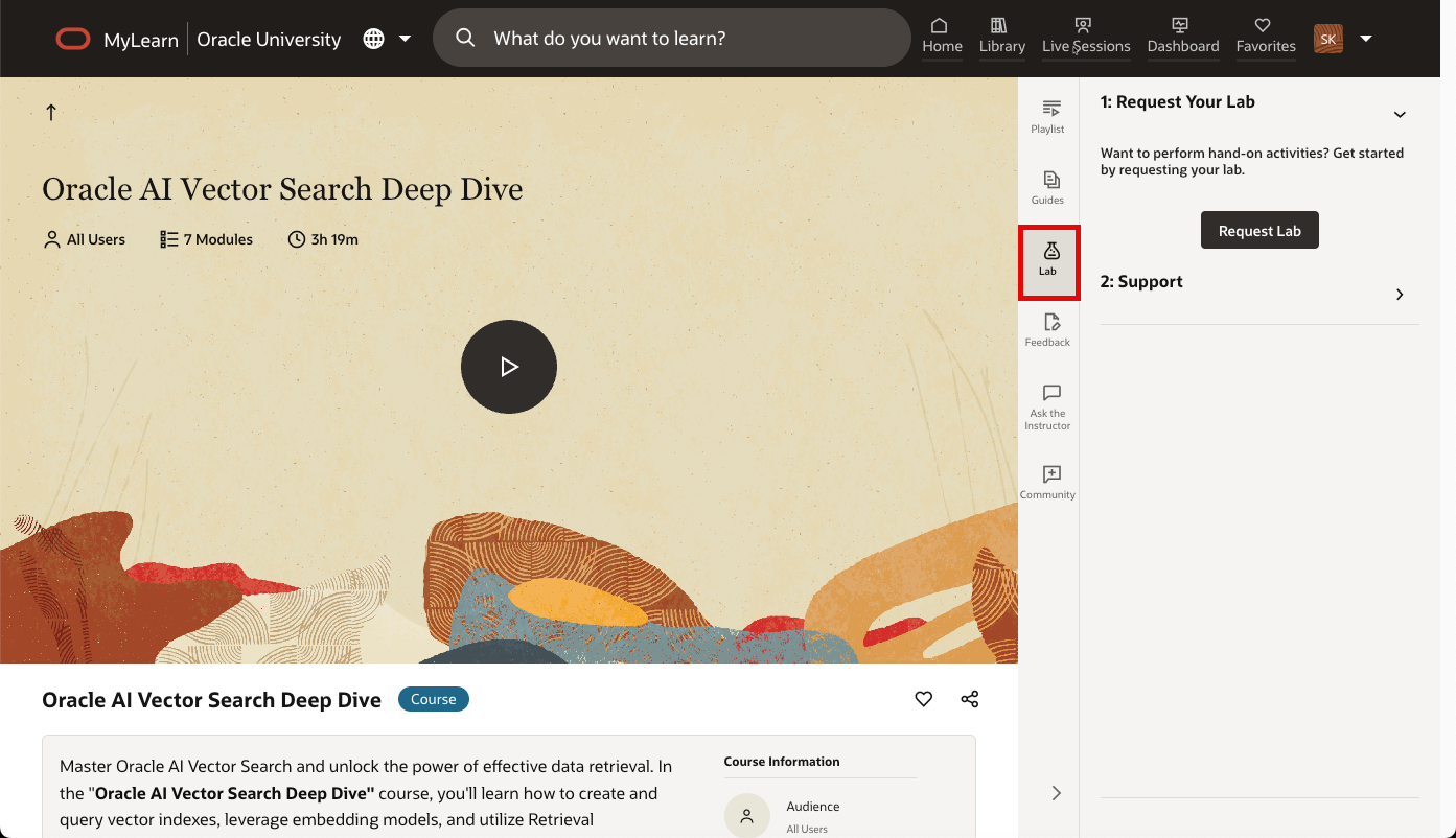 Now, with the addition of hands-on labs, learners can practically implement these concepts in a real Oracle Cloud environment. This ensures hands-on experience in building, optimizing, and managing AI-powered vector search solutions.