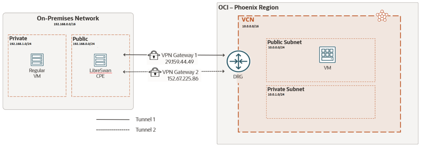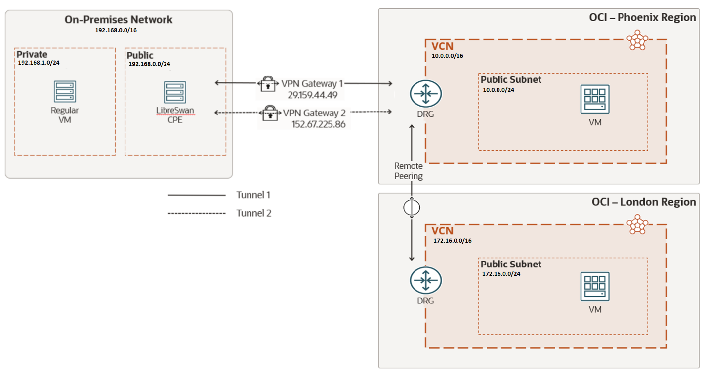 Typically, if you are in any given region, let’s say Phoenix, and you connect a Virtual Cloud Network (VCN) in this region to your on-premises Local Area Network (LAN), you will either use a Site-to-Site VPN connection or you will use a FastConnect circuit. Both of these resources are attachments to the Dynamic Routing Gateway. And so is the VCN.