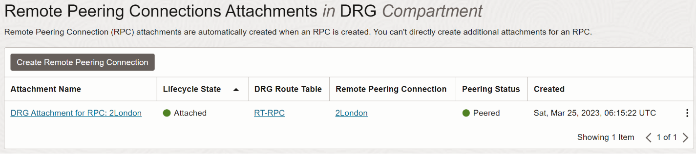 - RPC attachments: you can peer a DRG to other DRGs (including DRGs in other regions or in other tenancies) using remote peering connections.