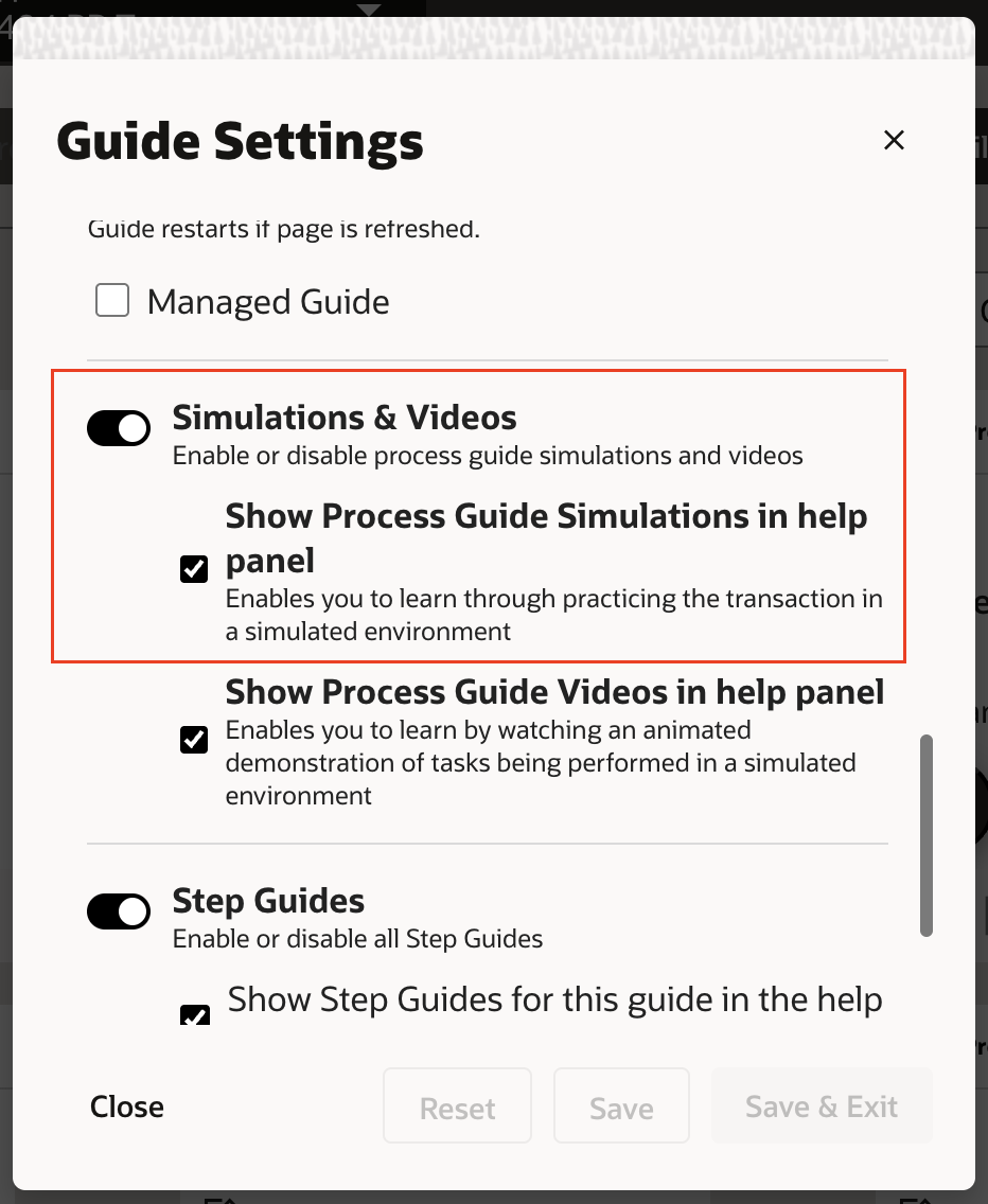 - If enabled at the account level, you can choose to disable Simulation for specific guides, giving you control over how content is consumed.