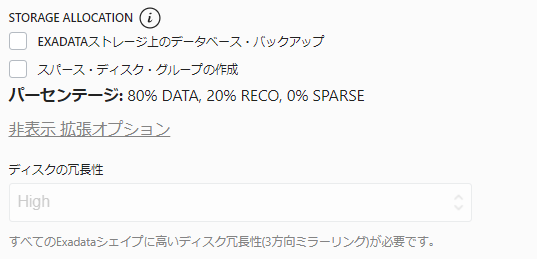 | SPARSE | Exadataスナップショット(SPARSE CLONE)の機能を利用する際に必要な領域 |