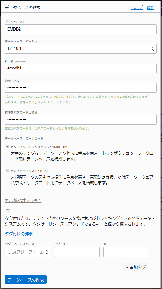 そのため、2個目以降のデータベースのバージョンとしては18cもしくは下位バーションが利用可能となるので、18c/12.2.0.2/12.1.0.2/11.2.0.4のデータベースを作成することが可能です。