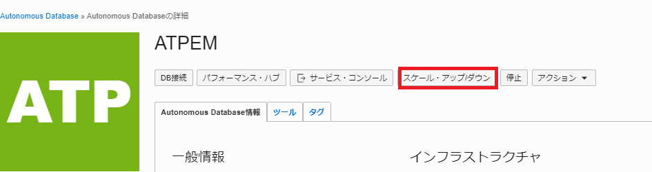 設定情報は、サービス詳細ページの『Autonomous Database 情報』から確認できます。