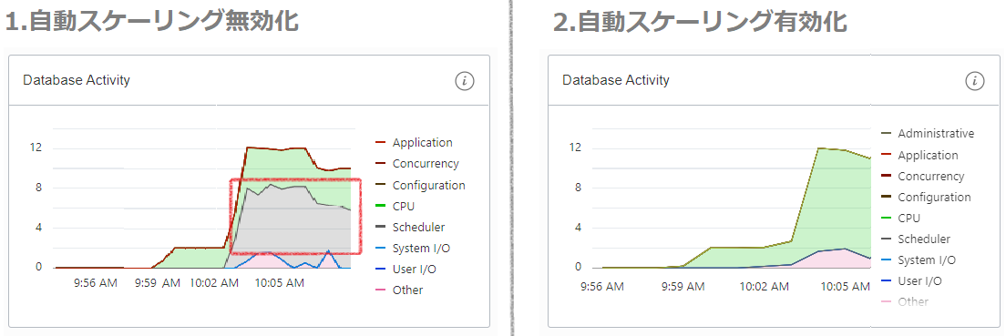 自動スケーリングを実際に利用してみて、CPU使用率が上昇し割り当て済のリソースよりも多くのリソースが必要となる状態において、処理実行中においても影響なく自動でコアが増え(スケール・アップ)、それにより処理が遅延せずに実行されたことがわかりました。