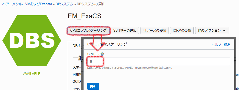 ・Exadata Cloud Service(ExaCS)でOCPU課金を停止する場合