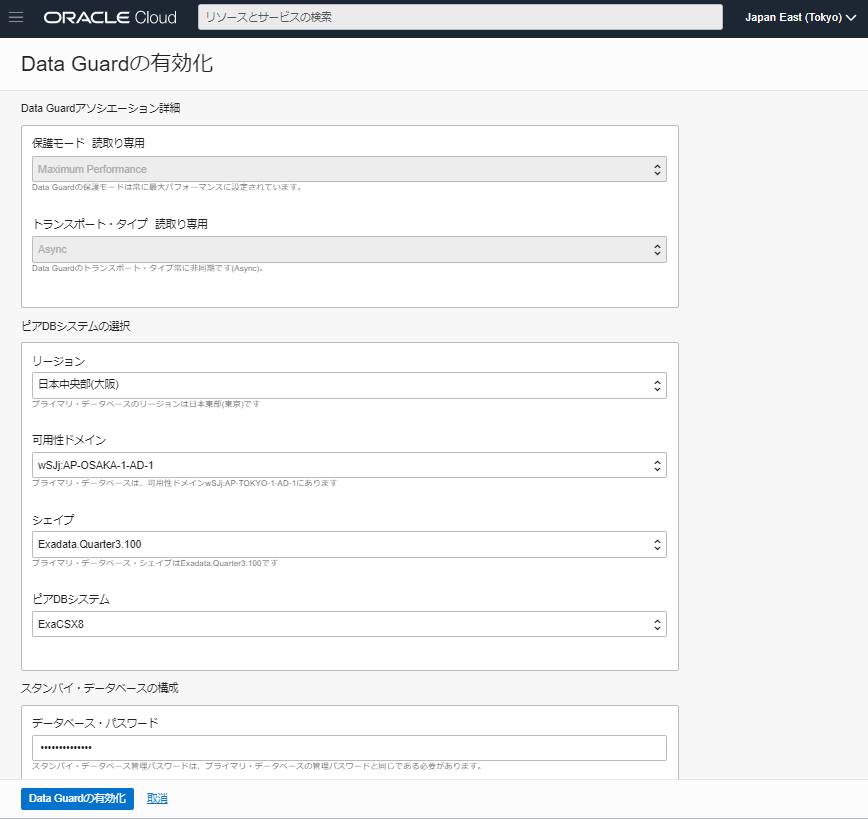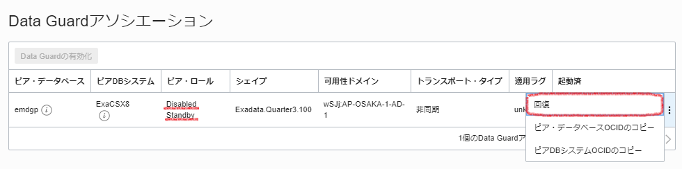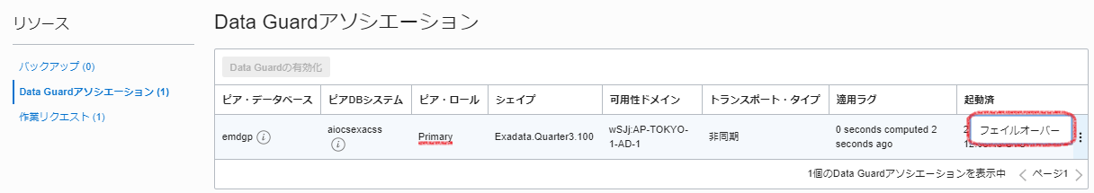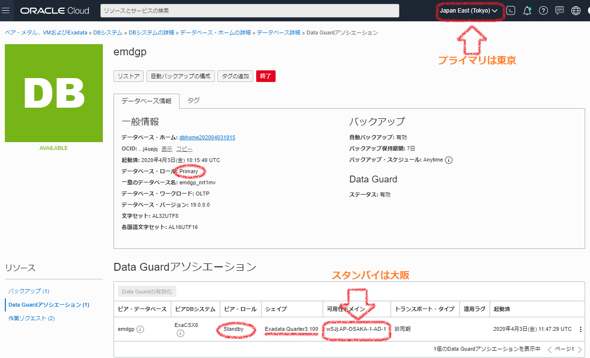 - 可用性ドメイン : スタンバイDBシステムのある可用性ドメイン