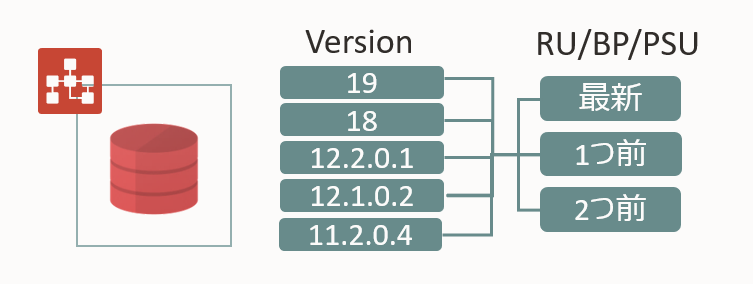 なお、Grid Infrastructure(Oracle Clusterware)は自分と同じもしくは下位のバージョン・パッチレベルのDatabaseの管理が可能です。そのため、もしDatabaseにパッチ適用することで、Grid Infrastructureよりも上位になる場合、先にGrid Infrastructure側にパッチ適用をしましょう。