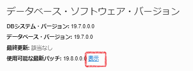 「データベース・ソフトウェア・バージョン」の「使用可能な最新パッチ」の横の『表示』をクリックします。
