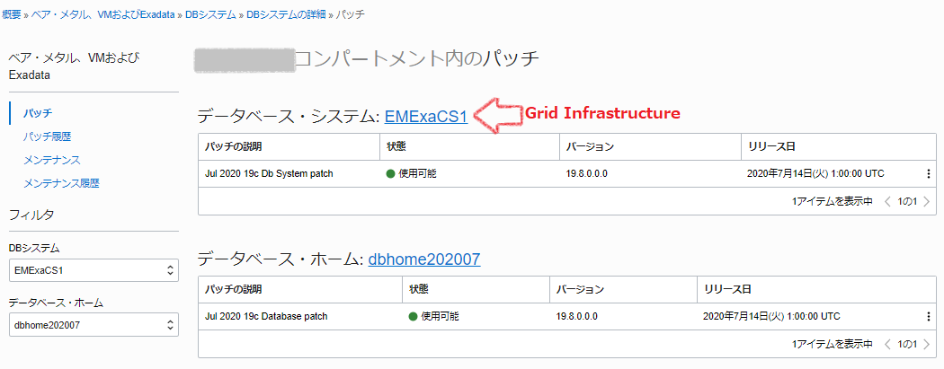 2020/08/25 ExaCSのDBシステム(Gird Infrastructure)とDatabaseのCLIでのパッチ適用方法のリンク追加