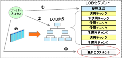 ① LOBセグメントの管理領域から未使用領域を検索します。
