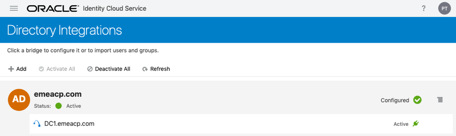 AD Bridgeの構成はOracle IDCS管理コンソール内で実行するため、このコンソールの以下の場所が次の調査対象です。