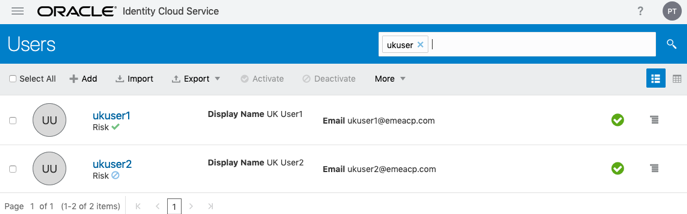 Usersのクイック検索によって、ukuser2がOracle IDCSにインポートされたことが分かります。これで、サインインの問題は解消されました。このユーザーはEBSに問題なくサインインできるようになりました。