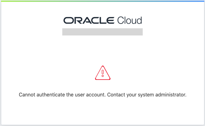 もう1つ簡単な例を見てみましょう。同じ環境を使用して、franceuser1@emeacp.comというユーザー名でログインしようとすると、ukuser2のときと同じエラー画面が表示されました。前述のすべてのチェック項目を確認し、このユーザーはOracle IDCS内に存在しています。